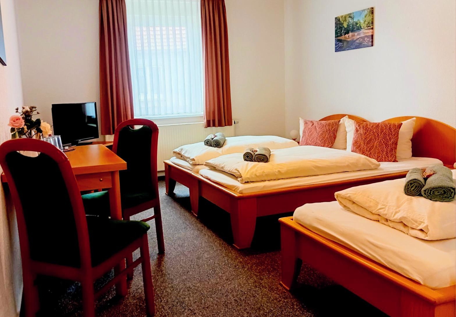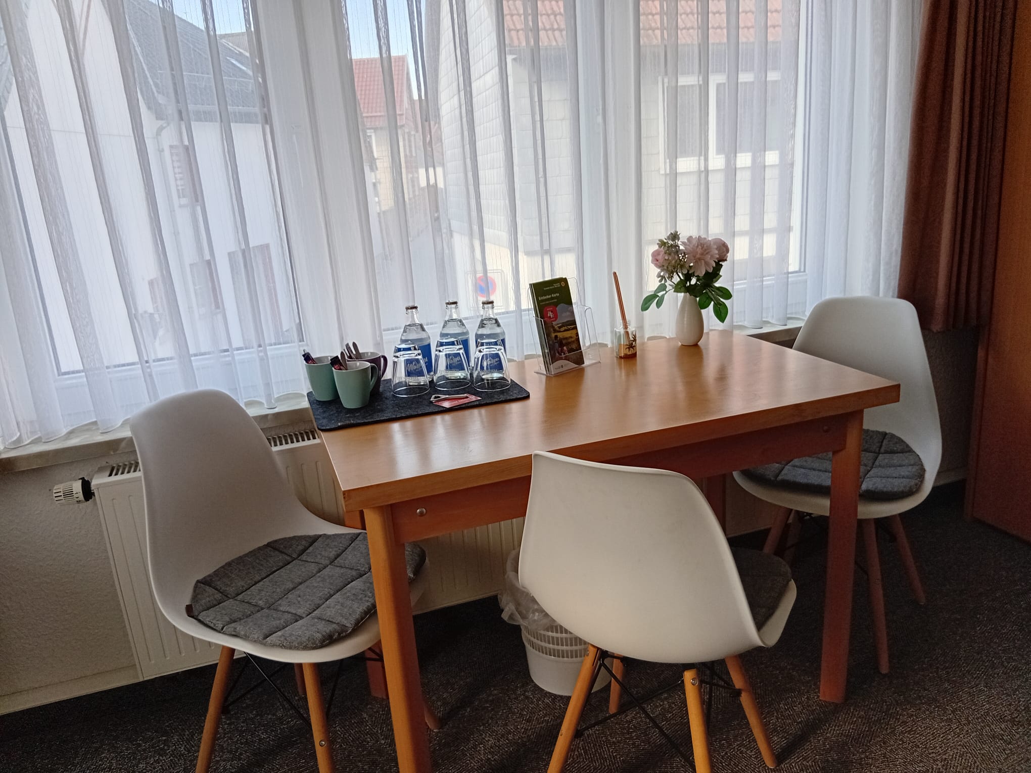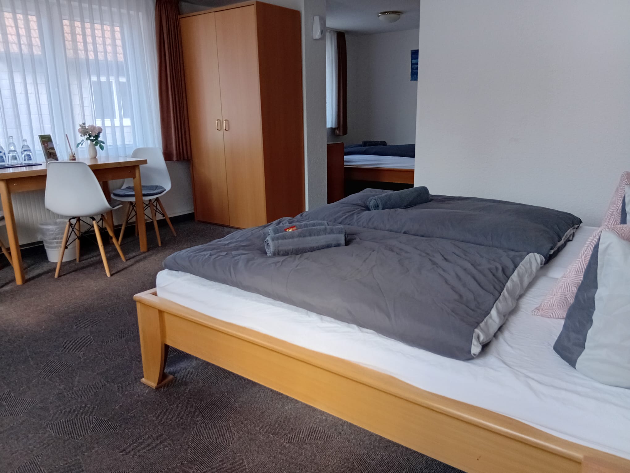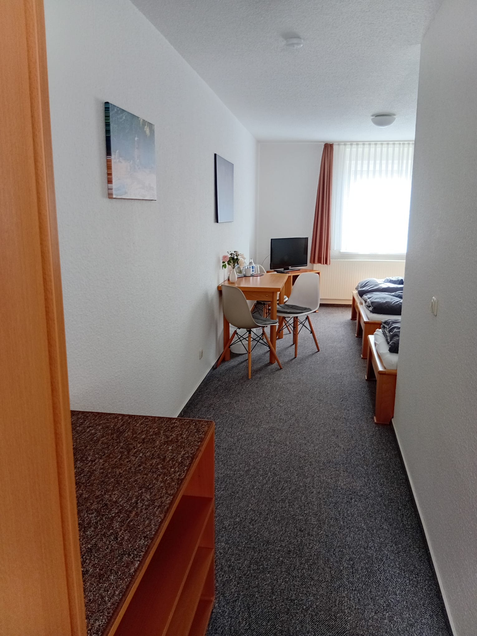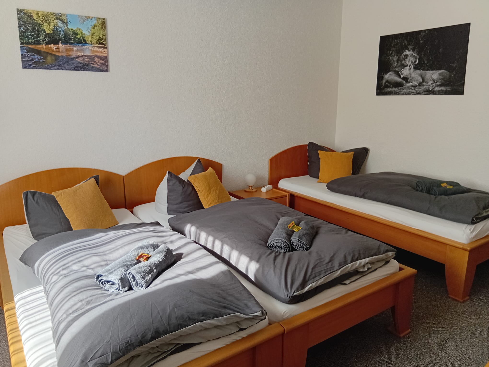 Unsere zwei hellen und geschmackvoll eingerichteten Dreibettuimmer in Helmsdorf, einem kleinen Ortsteil von Dingelstädt im Eichsfeld, bieten Platz für 1–3 Personen. Sie sind ideal für Paare, Alleinreisende oder Radurlauber, die Ruhe und Natur genießen möchten.