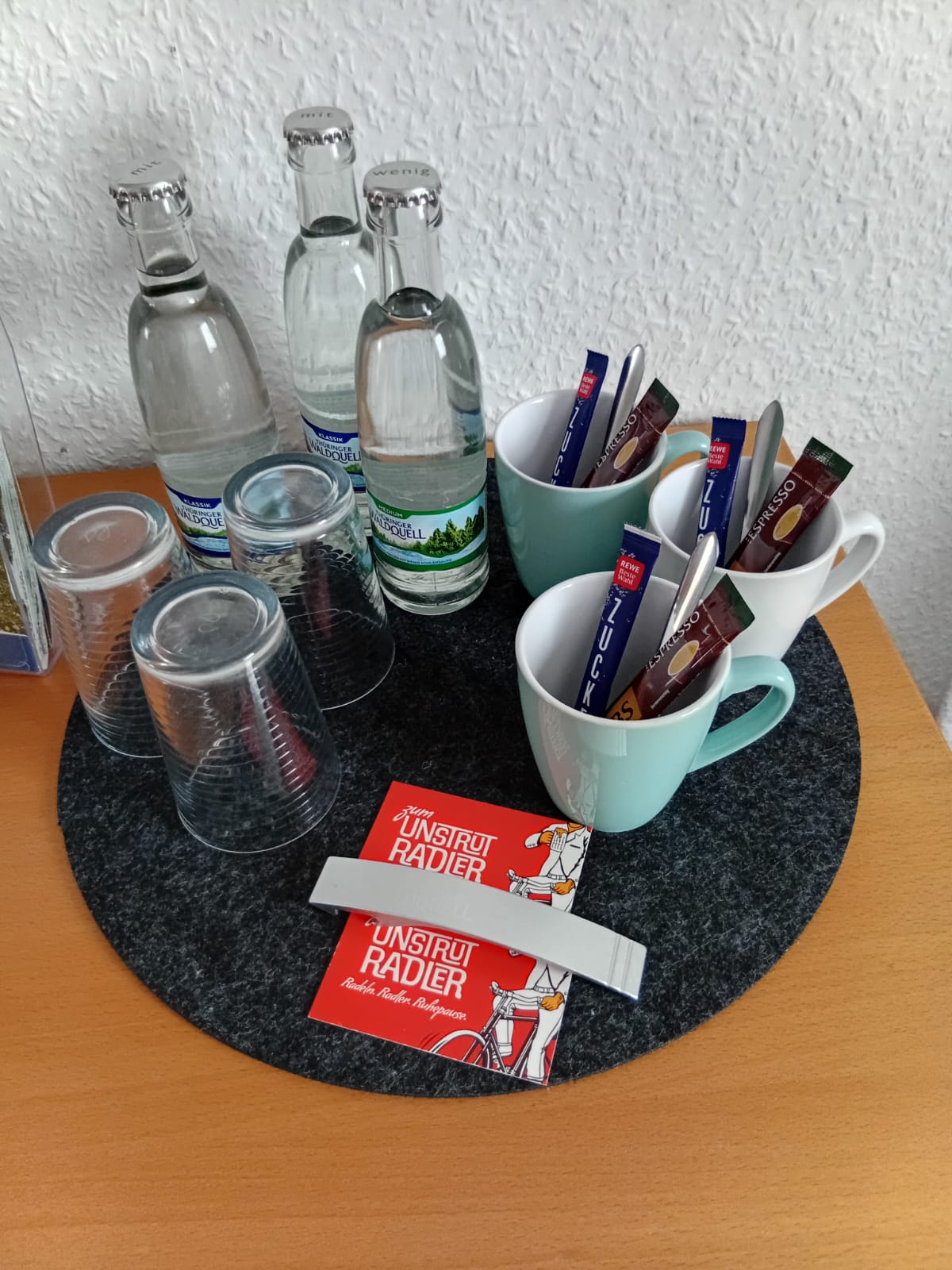 Unsere Gäste können die kleine Teeküche im Flur nutzen, um morgens mit einer frischen Tasse Kaffee oder Tee in den Tag zu starten.
