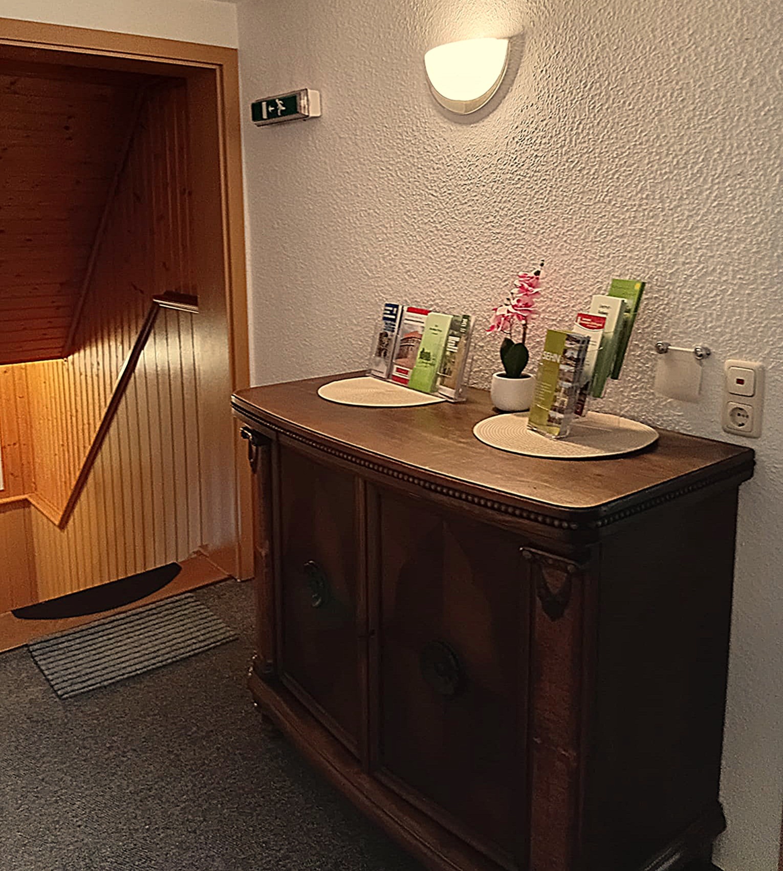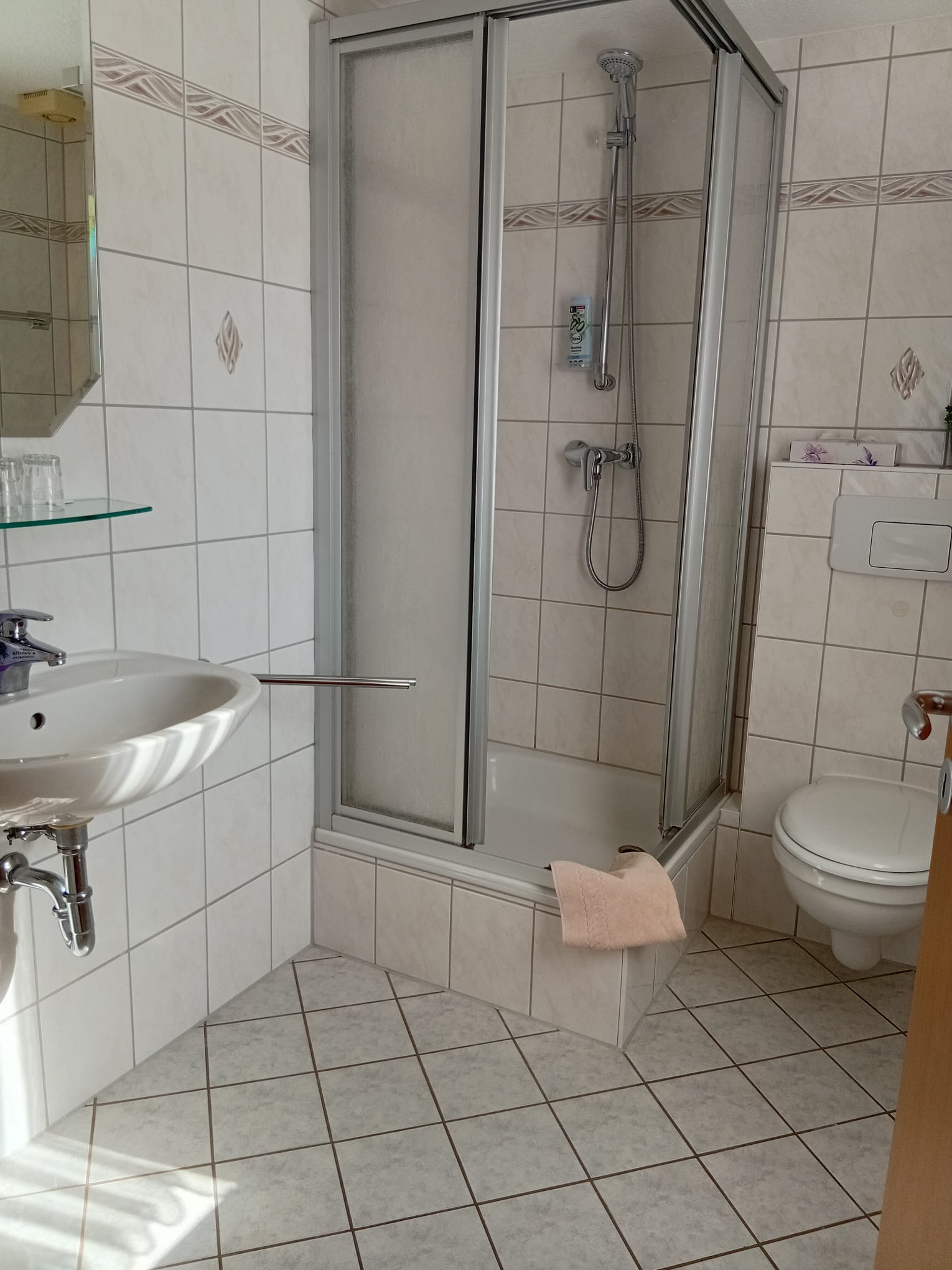 - ein eigenes Bad mit Dusche, Seife, Kosmetiktüchern und Duschbad, Fön (befindet sich im Kleiderschrank)